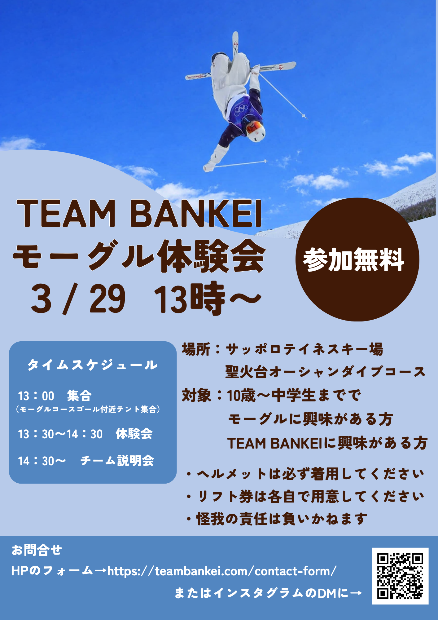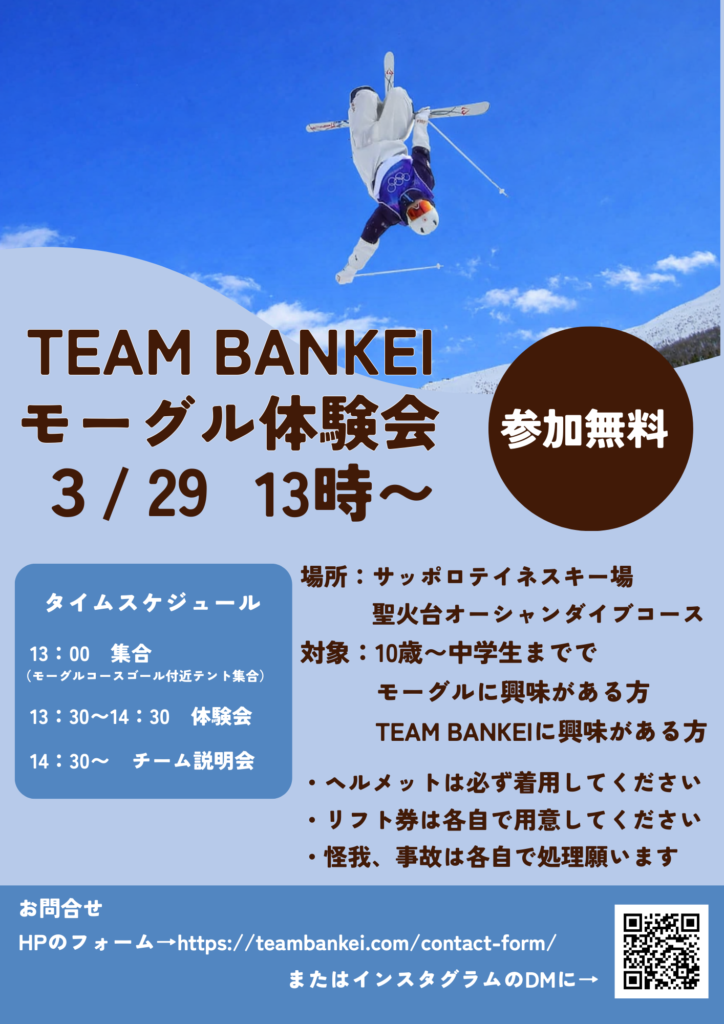 モーグル体験会を実施します!お申し込みはこちらのリンクからhttps://teambankei.com/contact-form/
